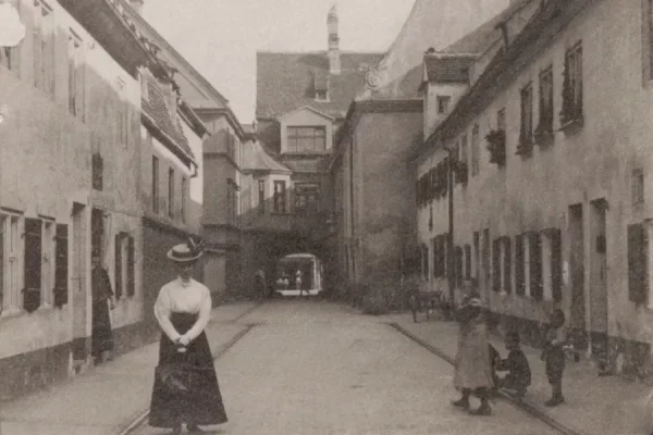 Die Herrengasse in der Fuggerei, Augsburg 1899.